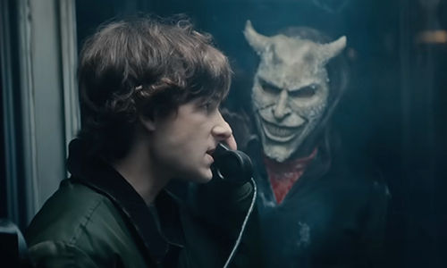 The Grabber arrives, wearing his now recognisable demonic mask and mocks Finney for seeing the phone as an escape route, relishing in telling him it does not work.